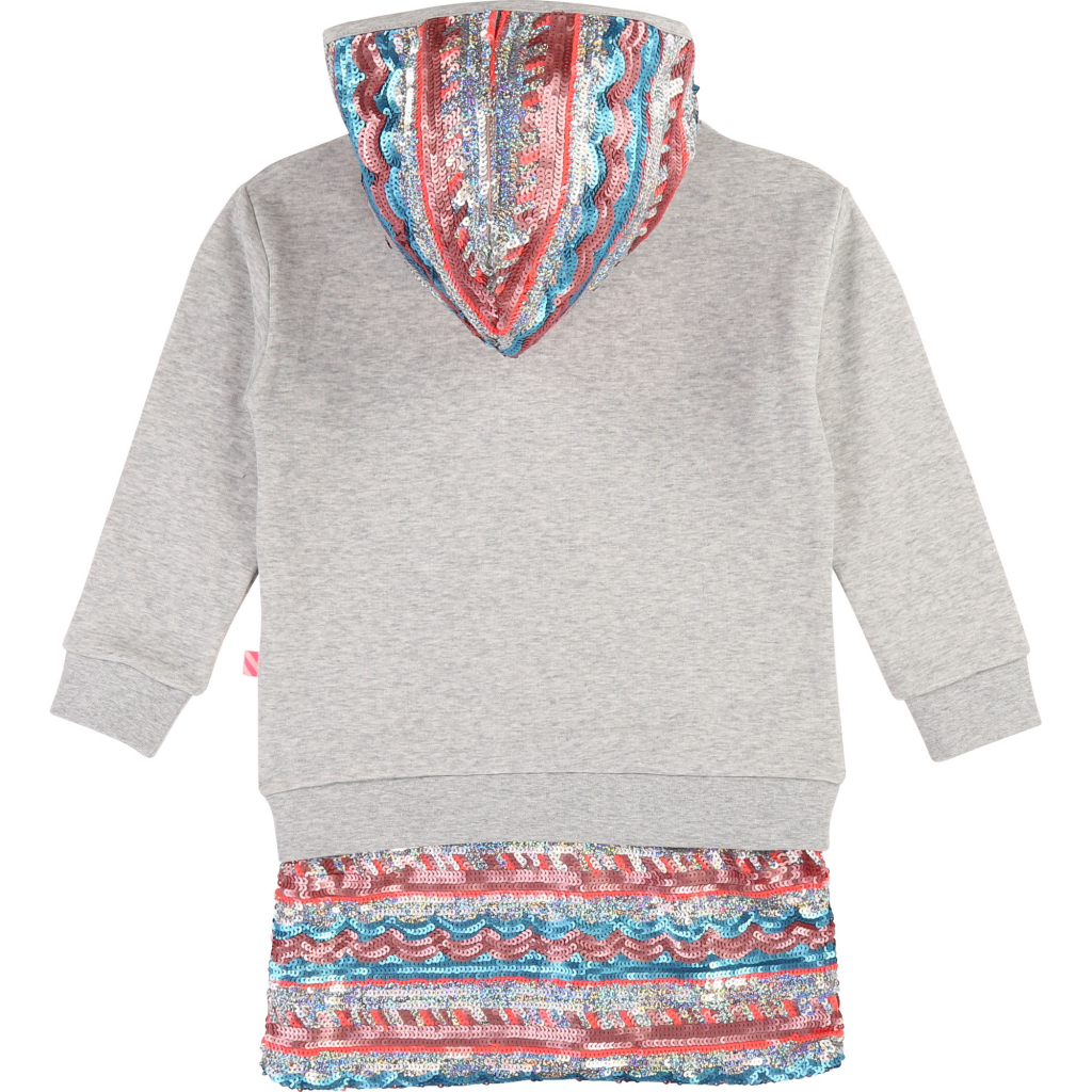 This Billieblush dress is destined to join the ranks of must-have girls' fashion pieces. Finished with elasticated ribbing at the cuffs and hem, it has a comfortable straight cut. The tulle and multicoloured sequins that decorate the hood and hem make it a unique piece. Made from cotton fleece, it will keep your little one nice and warm.